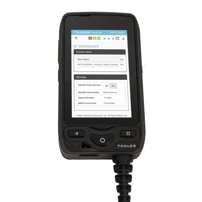 The SureLINK handset operates with the Thales MissionLINK® and VesseLINK™ systems providing voice communications and system configuration and control at your fingertips. With a large internal speaker and noise cancellation technology, the Thales SureLINK provides clear communications in the noisiest of environments. Make an emergency call with the onboard Emergency button, use the Thales Softphone application to make or receive phone calls discreetly or through the speakerphone, configure, and monitor the satellite system through the Thales Management Portal from the large touchscreen display. An Ethernet connection to the terminal allows the Thales SureLINK handset can be conveniently located in just about any desired location within easy reach. This weather resistant design using a Corning® Gorilla® Glass display is sure to withstand the toughest environments in a small handheld package.